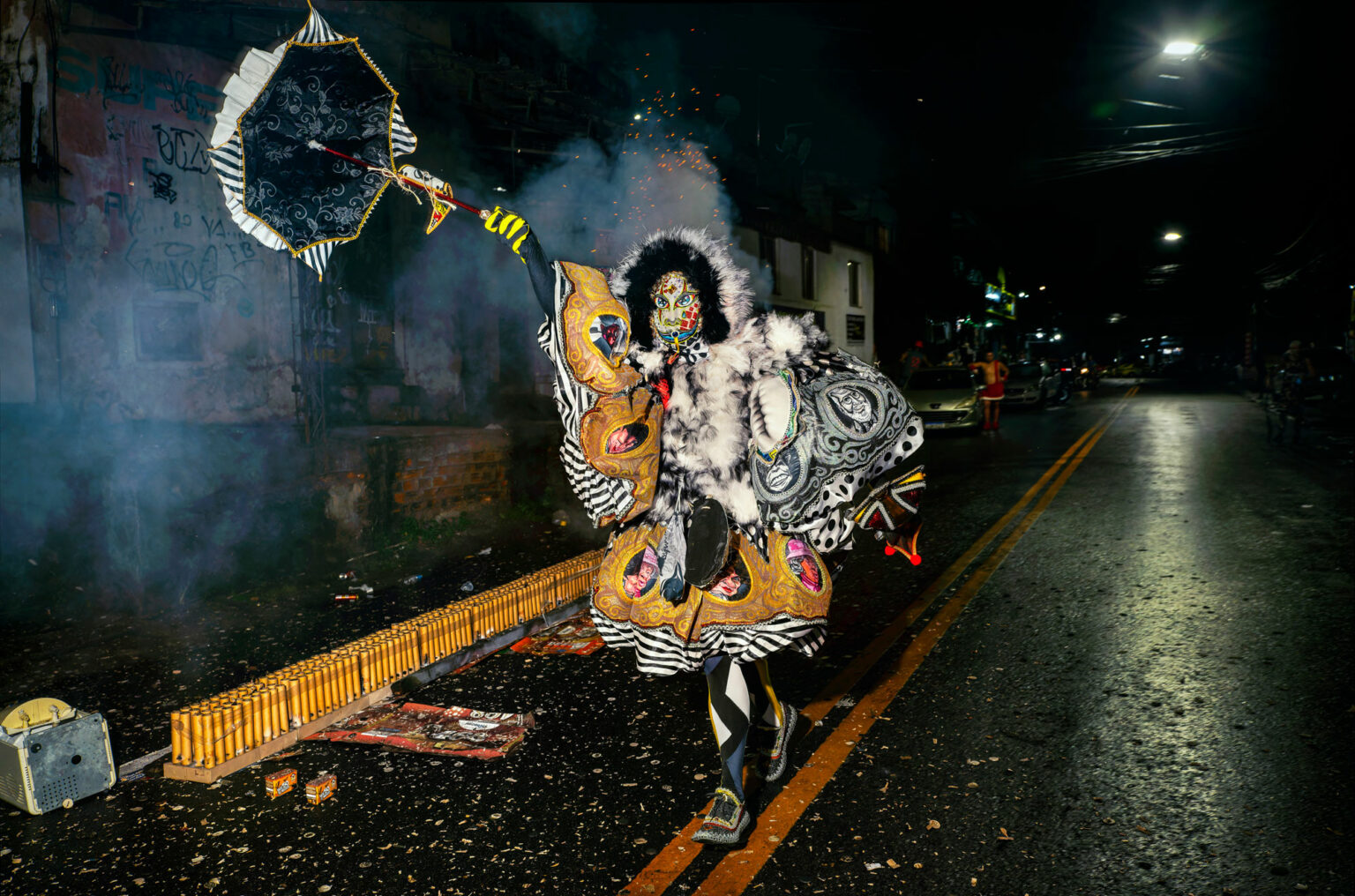 With Alucinação , the artist is part of a history of contemporary photography that spans documentary and fantasy, from Brassaï to Nan Goldin, from Pierre Verger to the hallucinatory archives of Daido Moriyama. His series presented at salon/H dedicated to the Bate-Bola H — the carnival of the northern and western districts of Rio — transcends simple reporting: it reveals an aesthetic of trance, an alteration of perception where the street becomes a sacred stage.