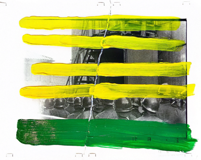 Kazuo Kitai, still too little known in Europe, is nevertheless one of the key figures in Japanese documentary photography and is recognized in the Japanese archipelago as one of the great masters of his generation. For over 60 years, he has documented the social movements of his country—from the student protests of the 1960s to the peasant struggles against Narita International Airport, the transformations of the Japanese countryside, and the daily lives of working-class neighborhoods. His profoundly humanist perspective offers a broad panorama of the transformations of Japanese society since the 1960s. IROHA, which can be translated as "a, b, c", marks a decisive turning point in his career. While this photographer has always recognized himself in the struggles of those he photographed, participating in rebellions as much as he documented them, at over 80 years old, he revisits his own archives with an equally radical gesture: tearing, then patching, and finally covering with paint the prints of his early work — those made at 20, at the time of the student protest movements — it is now against his own photography that he rebels.