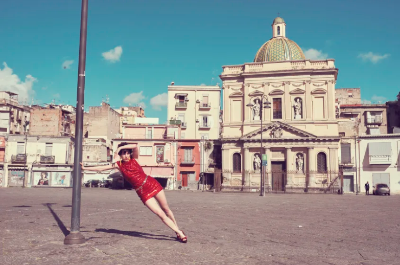 For her latest artistic residency in Naples, at Spot Home Gallery, Kourtney Roy continues her exploration of the staged self-portrait, in a new series where she delves into the heart of urban fringes. True to her visual language, she summons the Italian cinematic imagination, somewhere between neorealism and popular comedies, to extract a visual material that is both whimsical and melancholic. Far from any picturesque tourist trappings, she captures a hollow Naples, exuberant and secret, just like her characters.